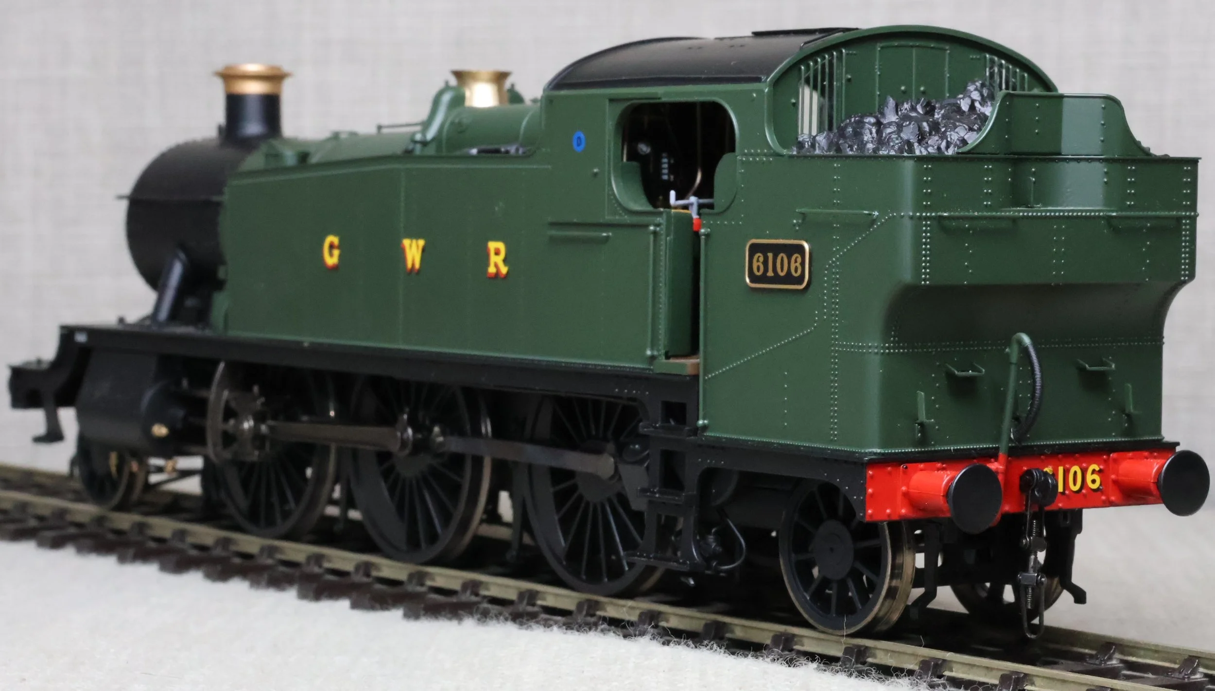 LRP09. GWR Collett Large Prairie 2-6-2 Tank Loco No. 6106. In GWR early post-war green livery as running circa 1942 - 1948 with shedcode ‘SLO’ (Slough) on the running plate. This is by Heljan and is supplied in a plain box. The model has had light use. The prototype was into service from Swindon Works in May 1931 and was withdrawn from Oxford in December 1965 and subsequently bought for preservation, in 1966, by a member of the Great Western Society at Didcot where she is still based. (Note - I have another example of the same model on the ‘Restoration Projects’ page but this is unrelated to the model on this page. No issues have been noted with this model). RESERVED.