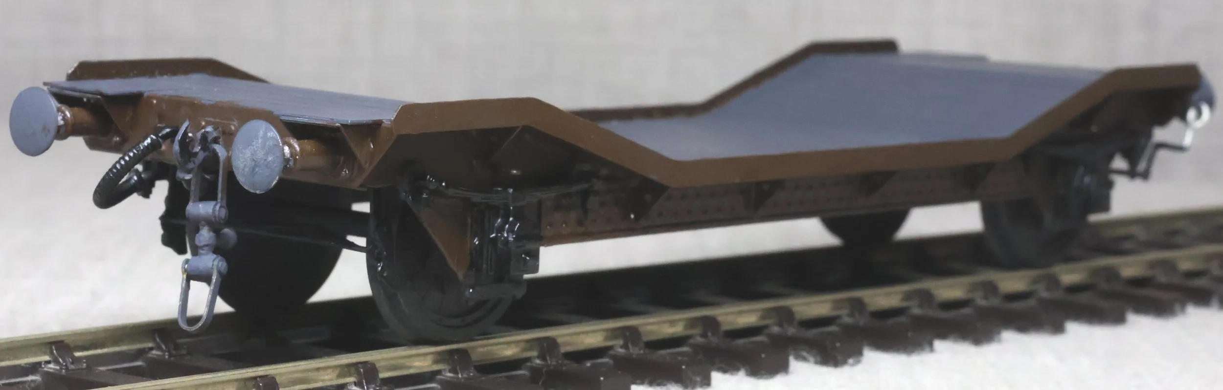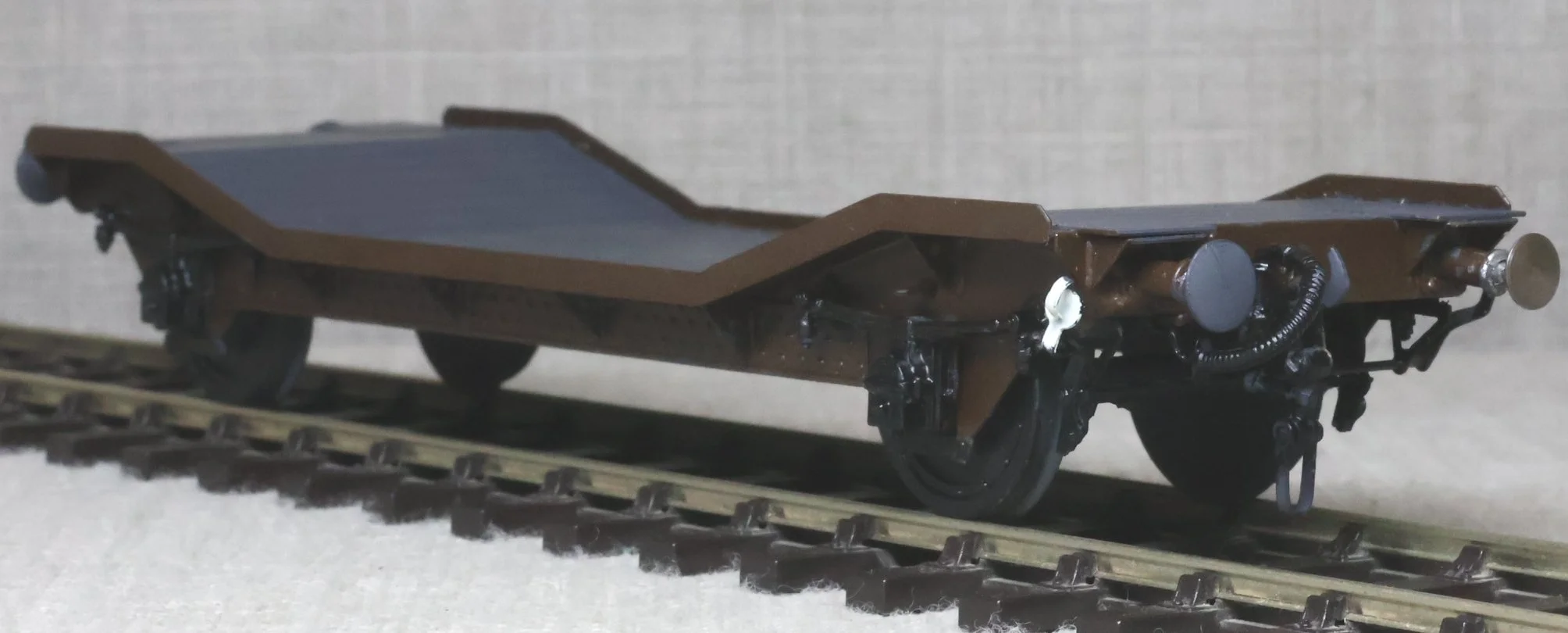 WRP39. GWR 4-wheel 'LOWMAC' Well Wagon, Un-numbered and Without Insignia. From a brass kit. Lightly used. £40.
