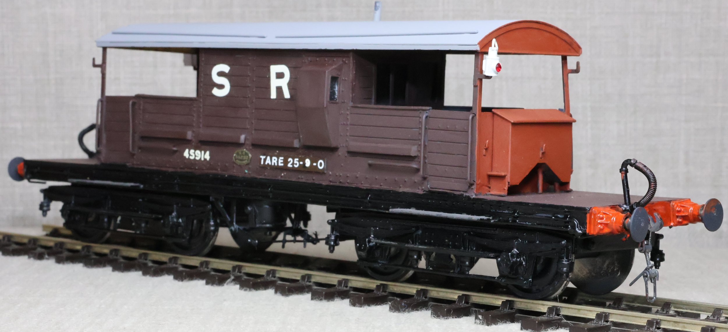 WRP70. Southern Railway 'Queen Mary' Bogie Brake Van No. 45914. This is from a brass kit possibly by Connoisseur Models running on Wayoh bogies. Lightly used. £125.