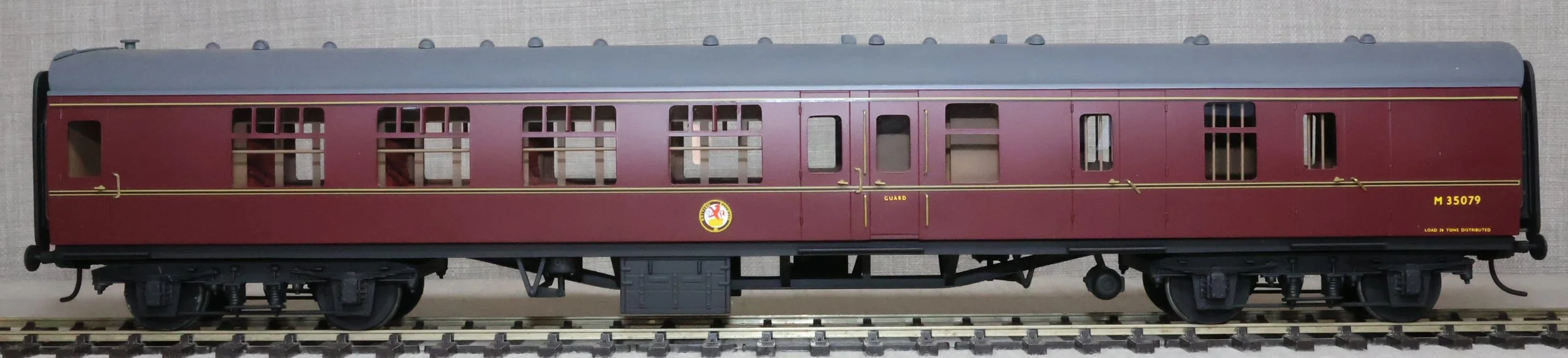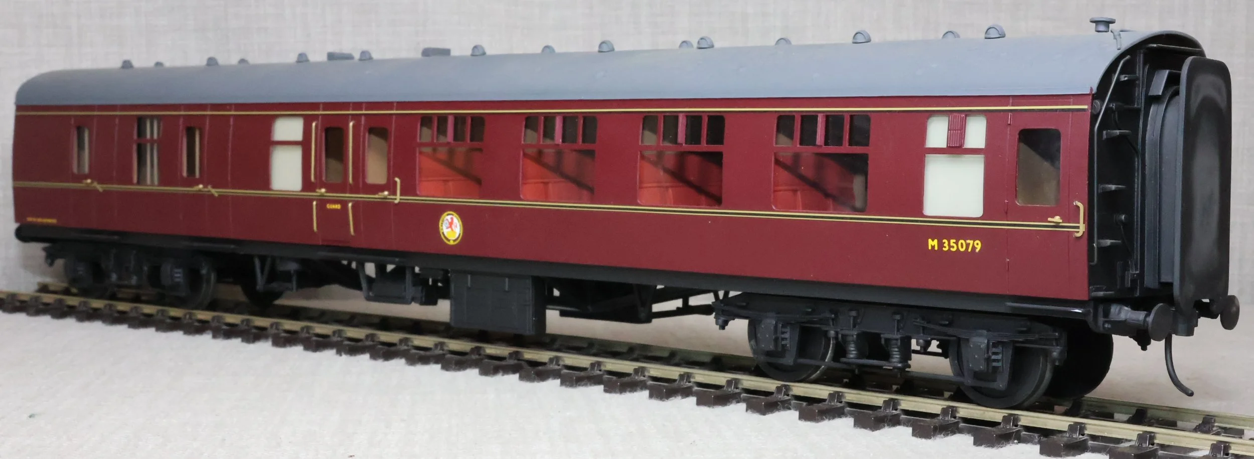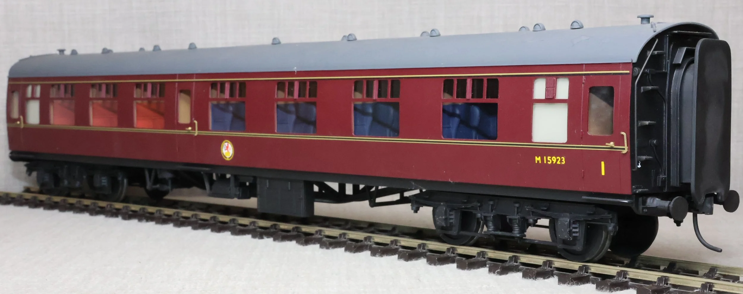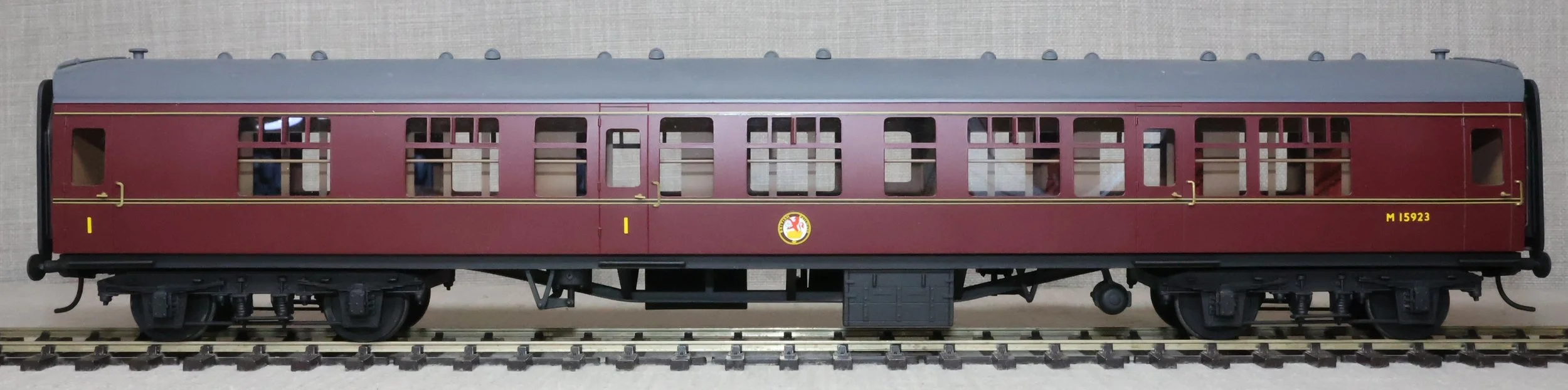 CSKD27. Set of Three BR Mk1 Corridor Coaches in BR Maroon Livery by Peter Cowling. Comprising (1) Corridor Composite (CK) No. M15923 to Diagram 126 (Wolverton, 1955). (2) Corridor Composite (CK) No. M16063 to Diagram 126 (Metropolitan Cammell, 1957). (3) Corridor Brake Second (BSK) No. M35079 to Diagram 181 (Gloucester Railway Carriage & Wagon Co, 1957). These are supplied in their original Peter Cowling box and have Kadee couplings fitted on the buffer beams. The models are lightly used. £450 for the Set of Three Coaches.