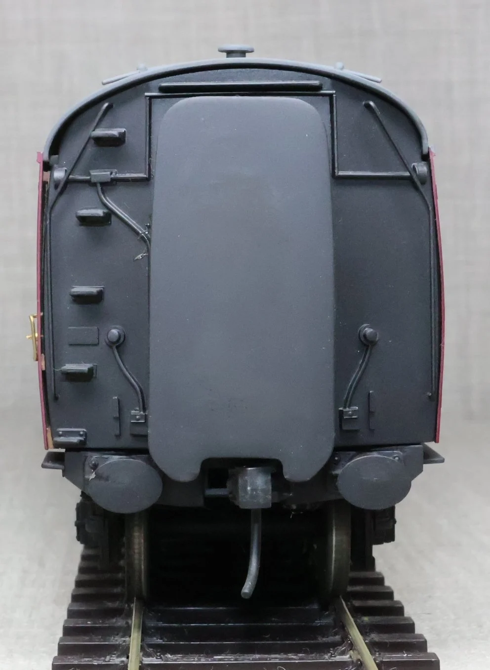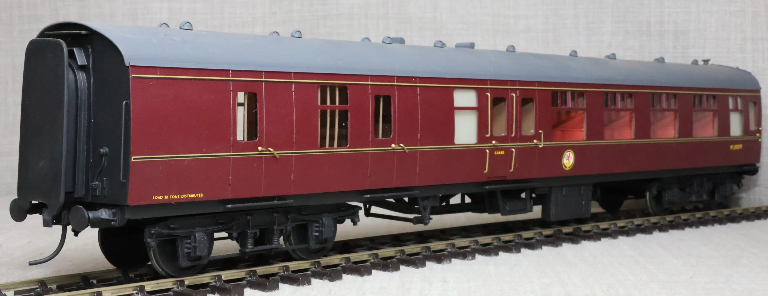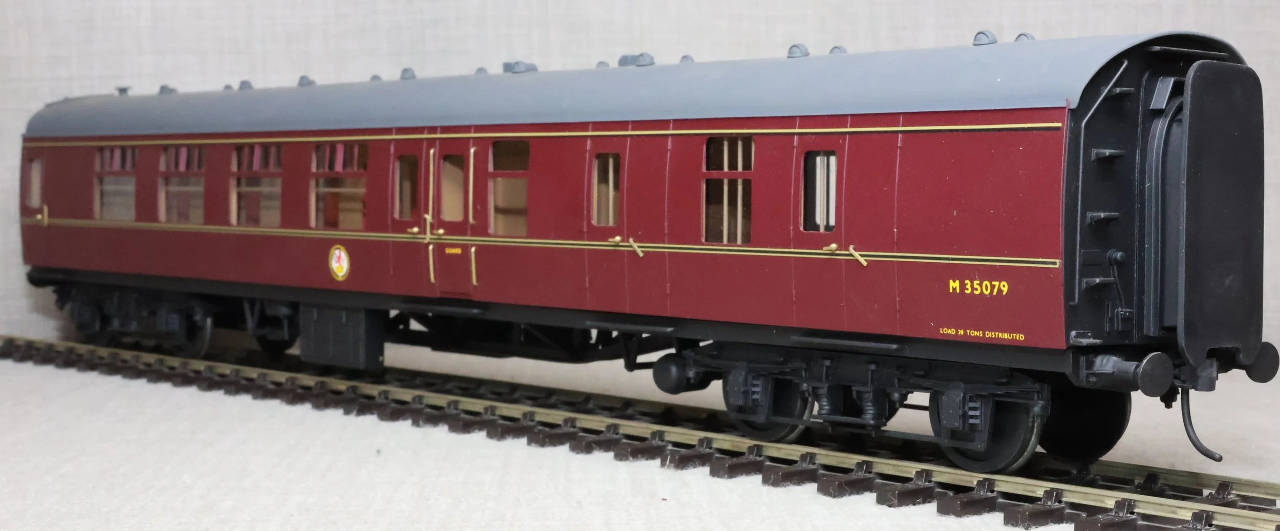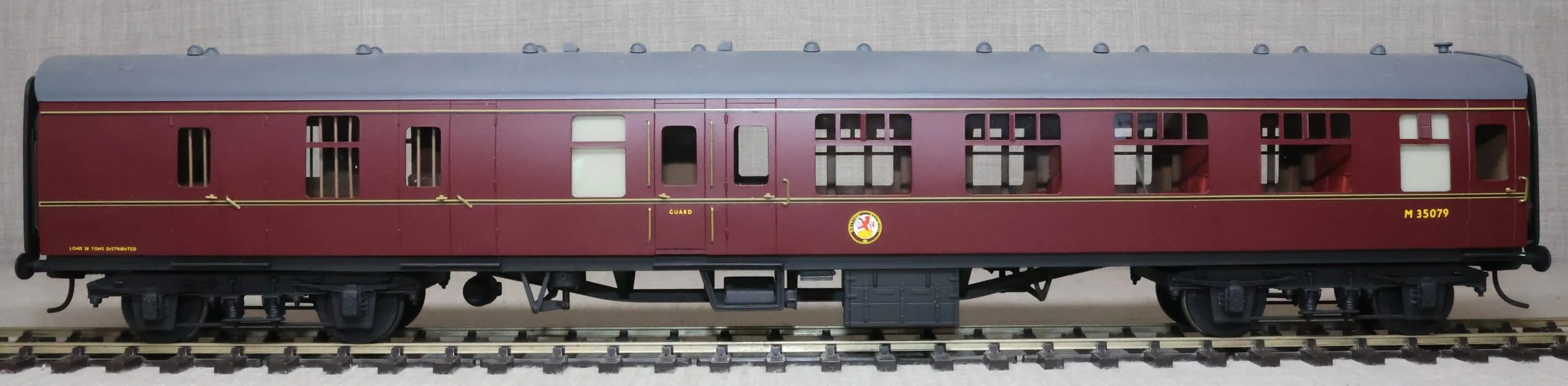 CSKD27. Set of Three BR Mk1 Corridor Coaches in BR Maroon Livery by Peter Cowling. Comprising (1) Corridor Composite (CK) No. M15923 to Diagram 126 (Wolverton, 1955). (2) Corridor Composite (CK) No. M16063 to Diagram 126 (Metropolitan Cammell, 1957). (3) Corridor Brake Second (BSK) No. M35079 to Diagram 181 (Gloucester Railway Carriage & Wagon Co, 1957). These are supplied in their original Peter Cowling box and have Kadee couplings fitted on the buffer beams. The models are lightly used. £450 for the Set of Three Coaches.