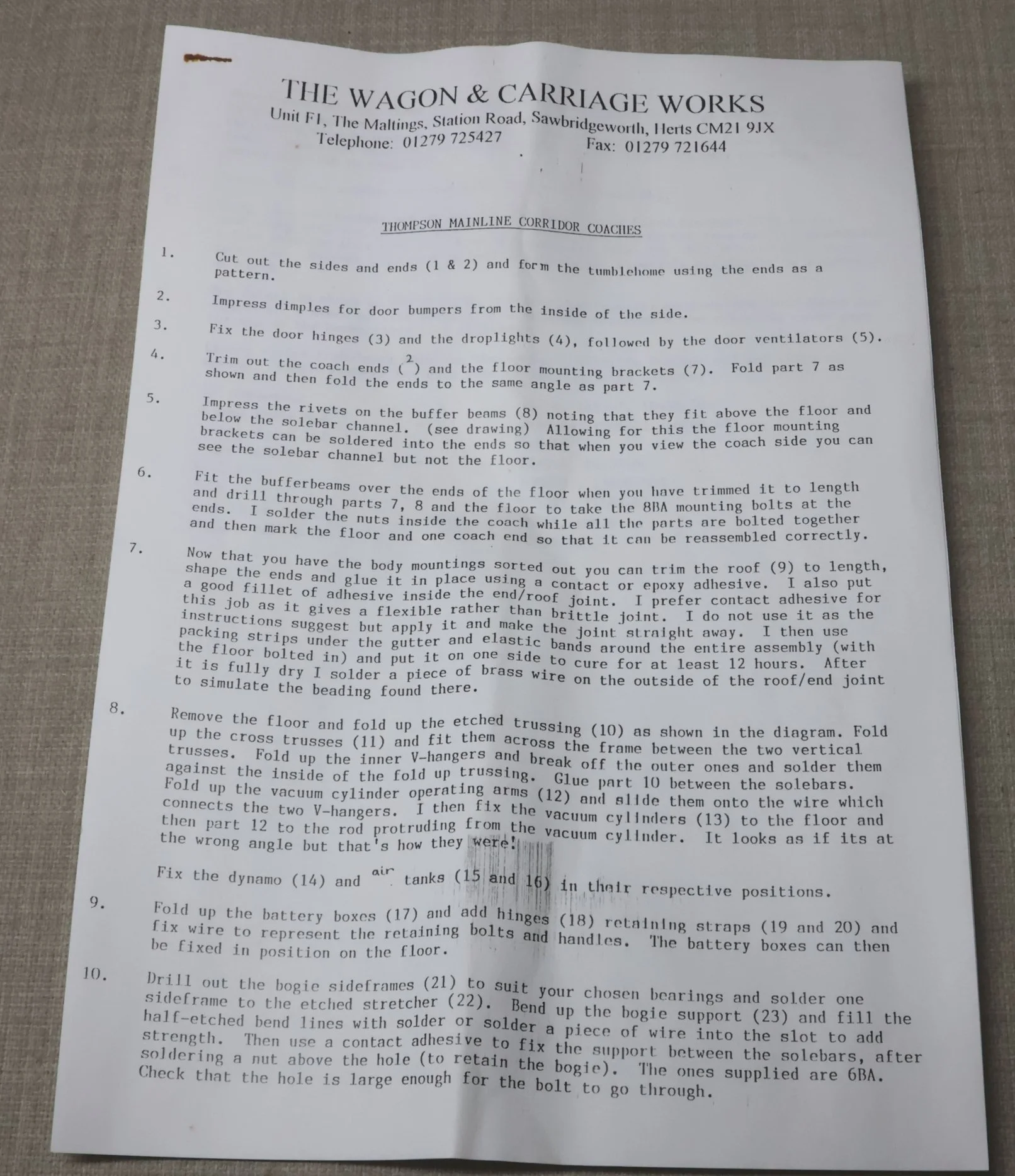 KSKD02. Wagon & Carriage Works Kit for a LNER/BR Thompson Corridor Brake/Third. With instructions and with turned steel sheels. Also supplied with bogie parts as per the kit plus a separate Wayoh LNER bogie kit. As a pre-owned kit I am unable to give a guarantee of completeness and the contents have not been checked. RESERVED.