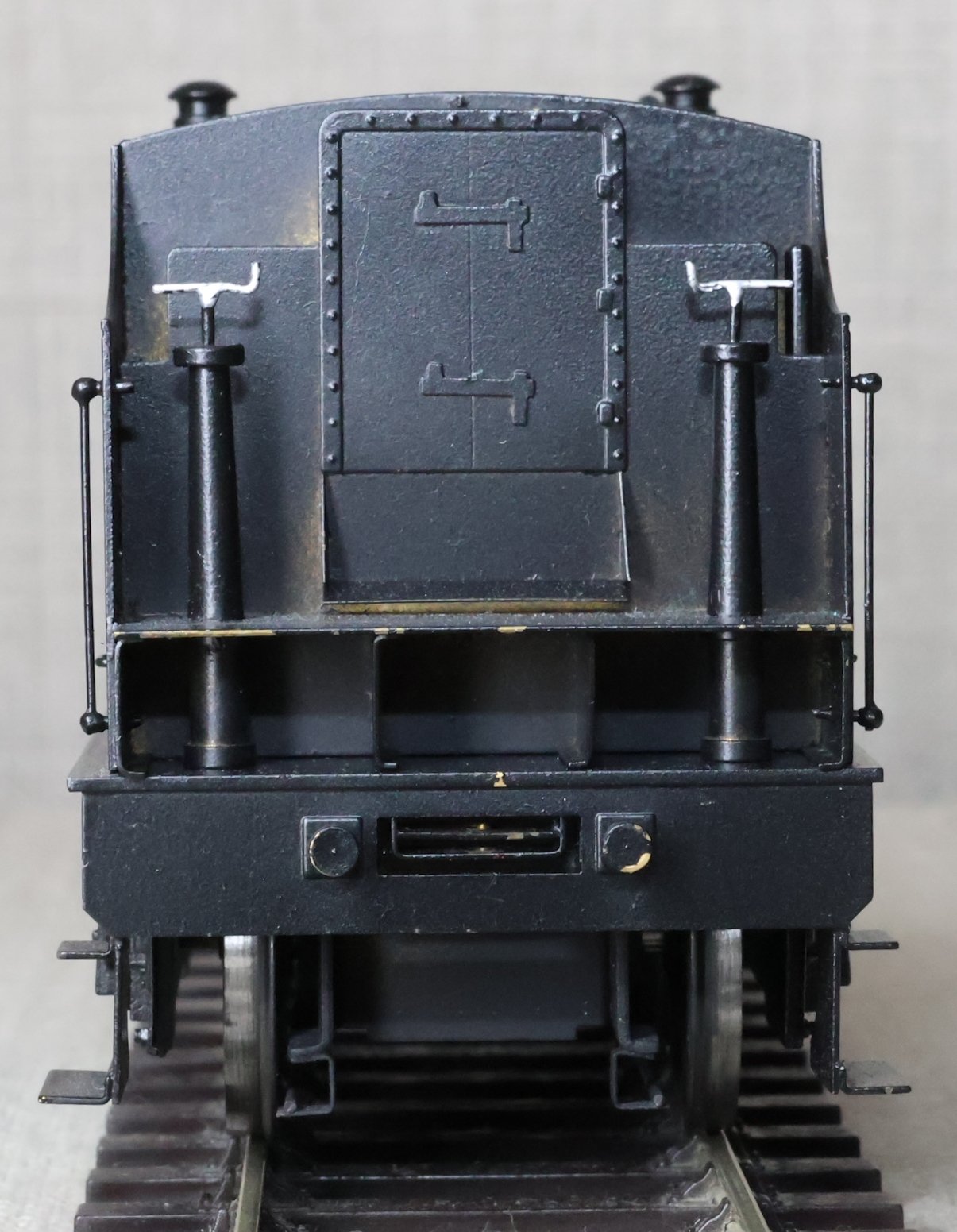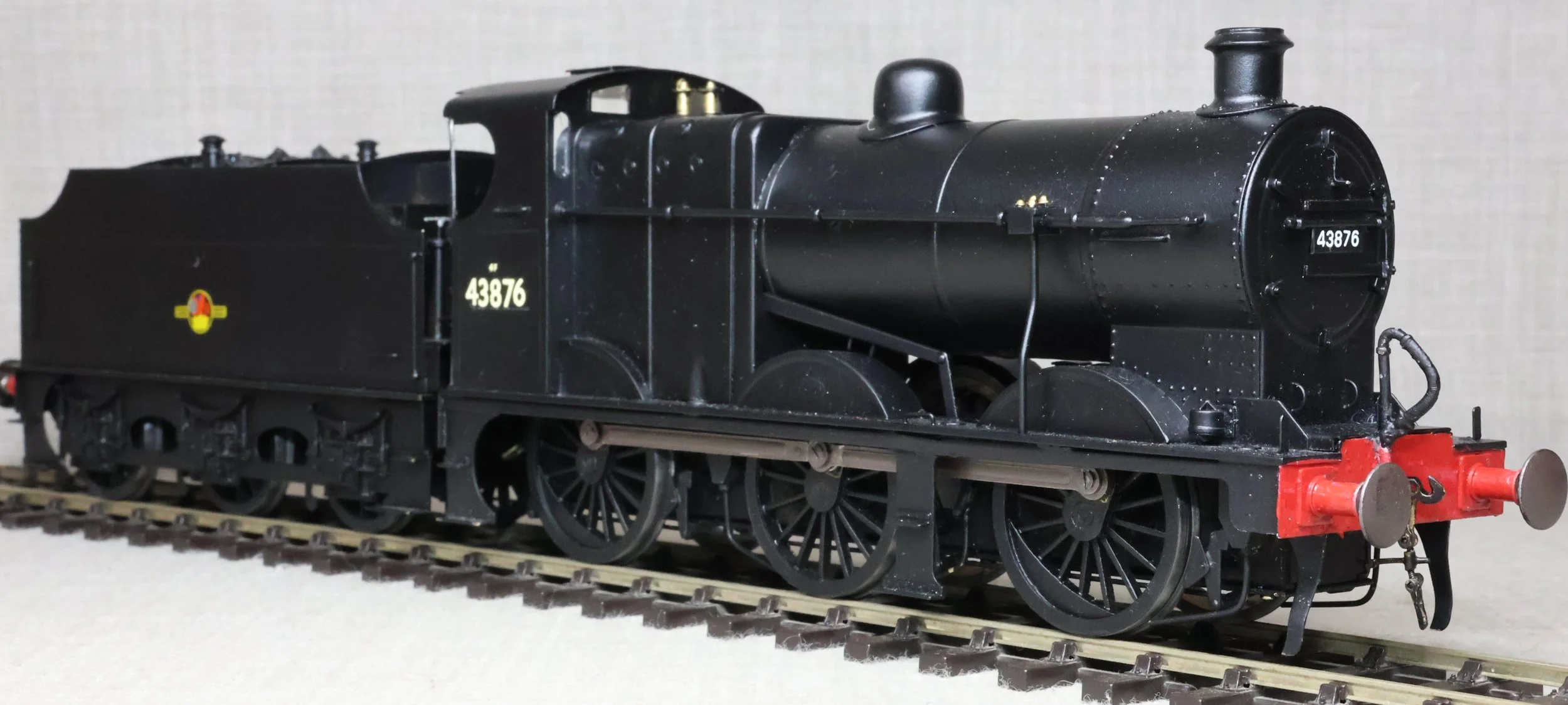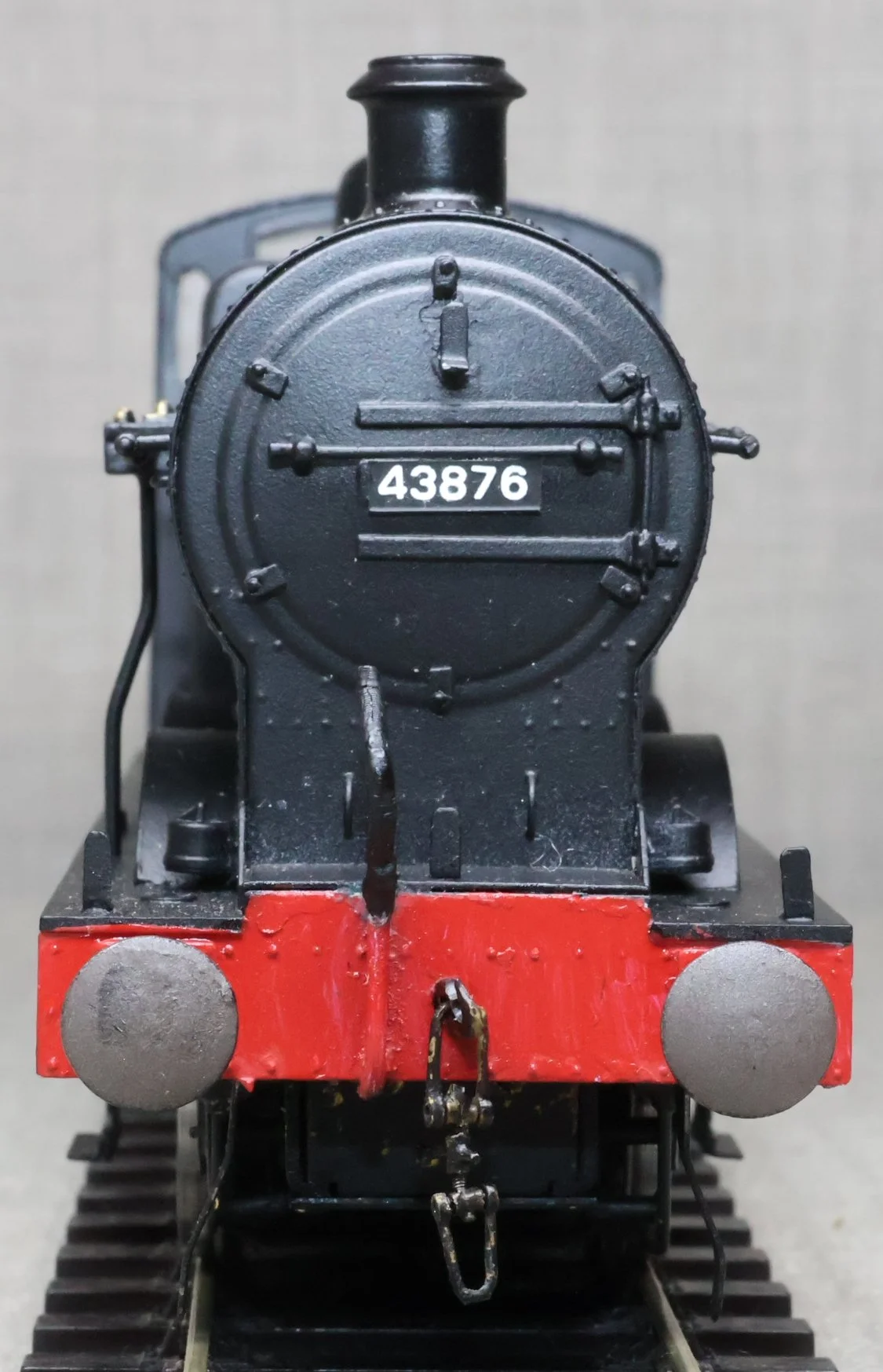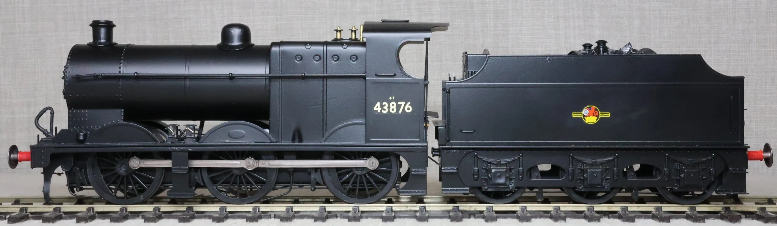 LJJ01. BR ex-LMS ex-Midland Railway Fowler '4F' 0-6-0 and Tender No. 43876. In plain BR black livery with late crest. This is by Sancheng for Bachmann Brass with many detailing improvements by John Jarvis including fitting of a Canon motor coupled to a multi-stage gearbox and with much improved cab detail. It has compensation (springing) on the leading 2 loco axles and the centre tender axle. The model is lightly used, is supplied in a plain box, and a full list of the improvements made will be included with the model. The prototype was into service from Derby Works during 1918. Its BR life was spent at Wellingborough (1948), Bedford (1949 - 1958), Cricklewood East (1958 - 1959) then Coalville from where it was withdrawn in December 1962. £650.