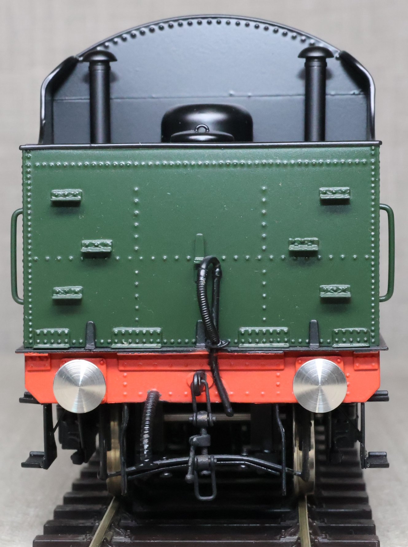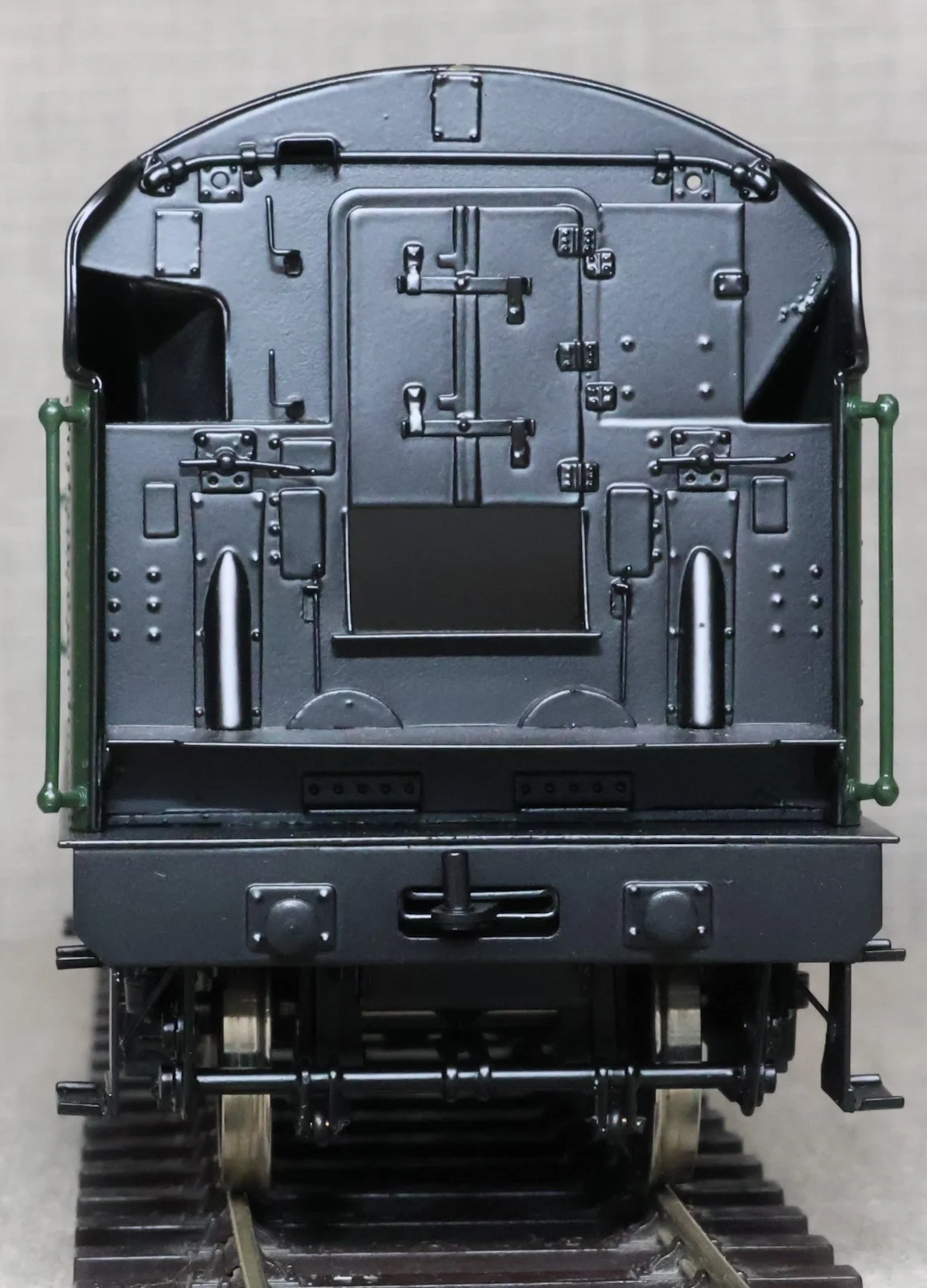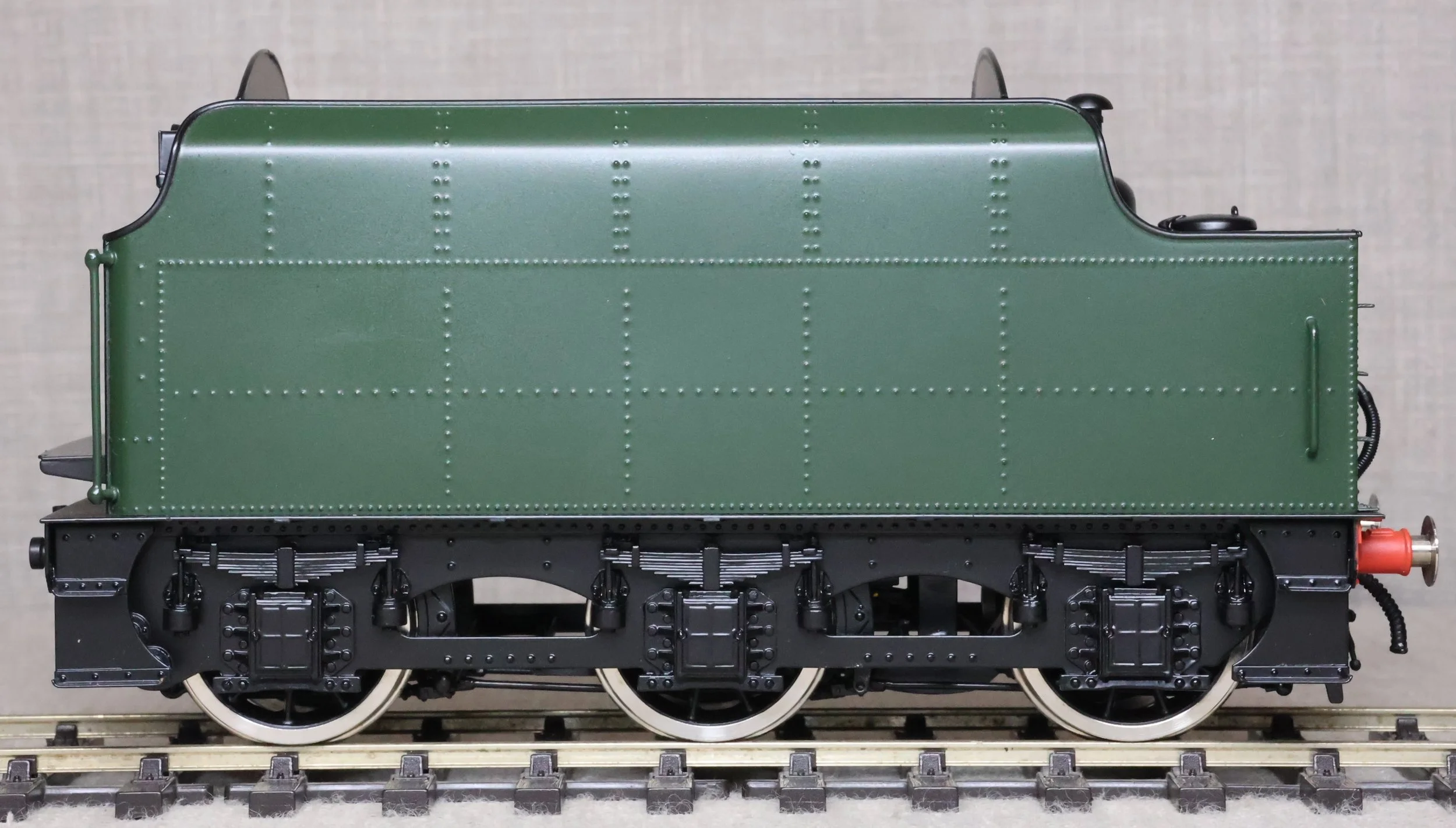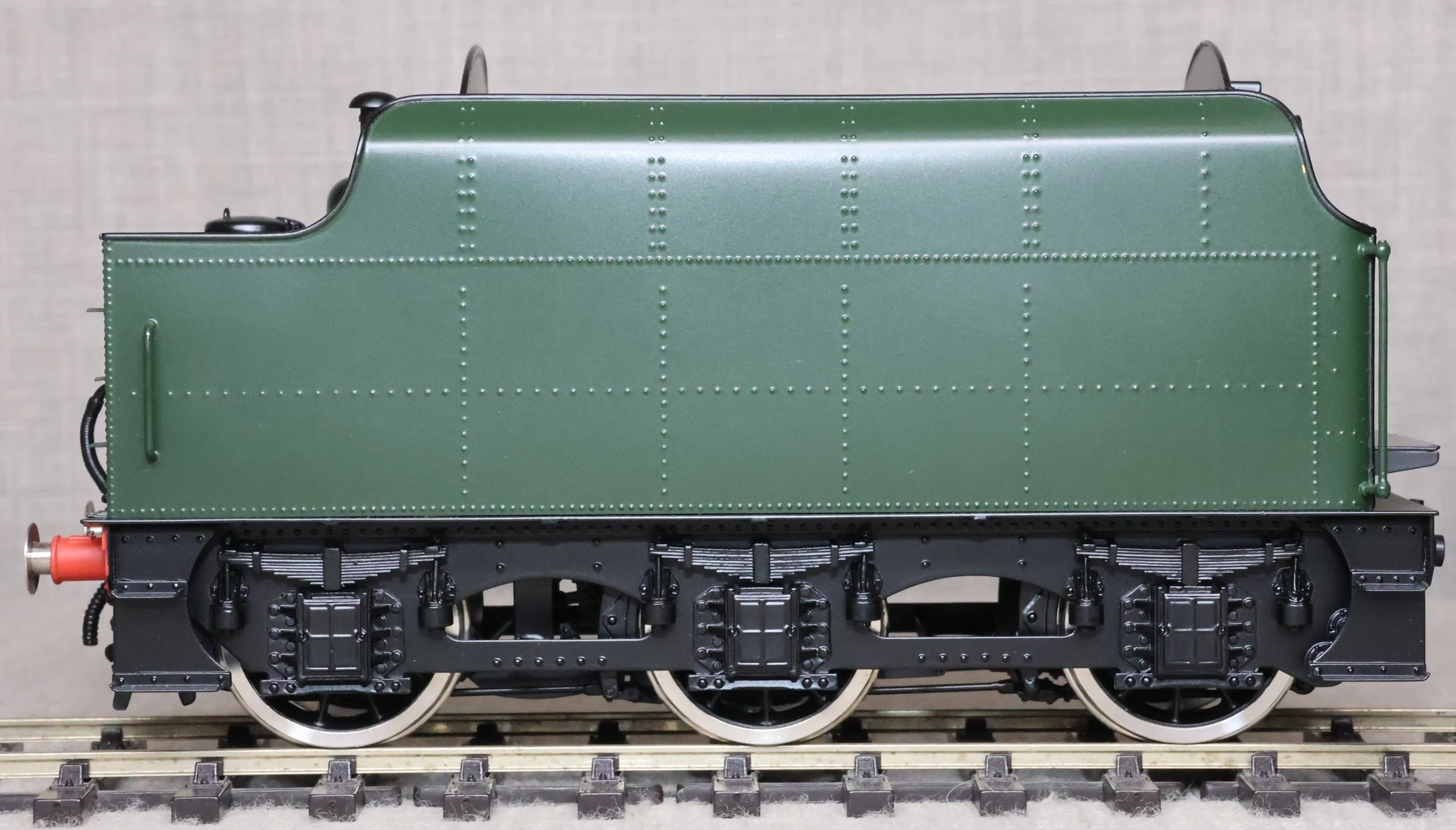 MSL12. BR Stanier 4000 Gallon Tender, Rivetted Type in BR Green with Black Chassis. This is a brass model by Sancheng for Finescale Brass, is unused, and is supplied in its original Finescale Brass box. Suitable for a BR Jubilee, Patriot or Royal Scot. £250.