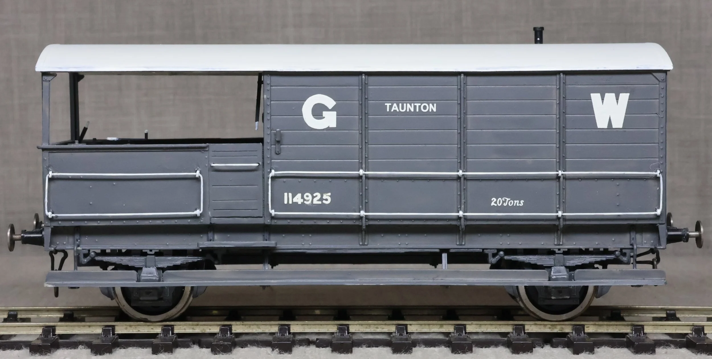 WRG38. GWR 20 Ton Toad Brake Van No. 114925 'Taunton'. To GWR Diagram AA19. This is very well built and painted from a Parkside Dundas plastic kit and appears unused. The model is supplied in its original box. £40.