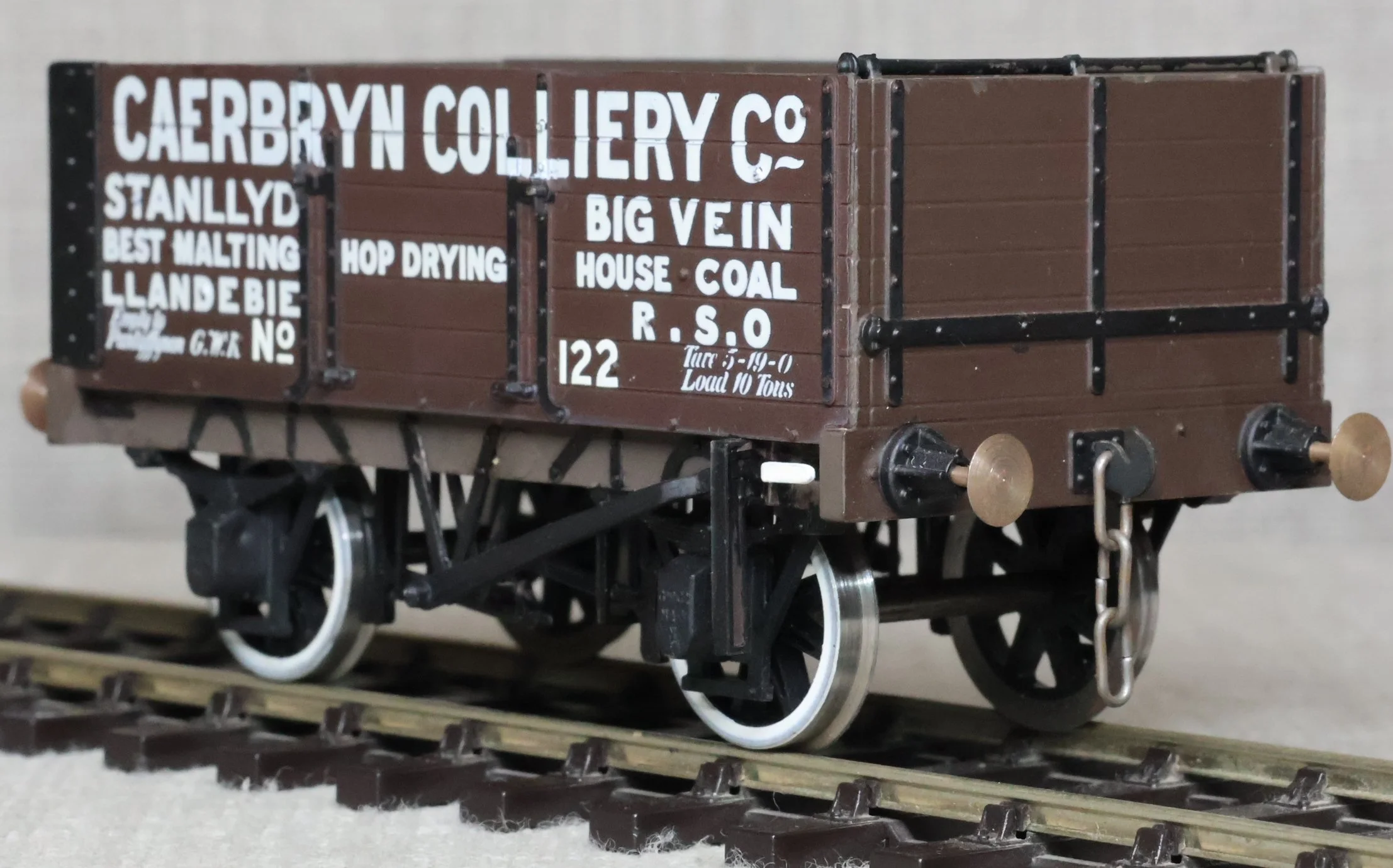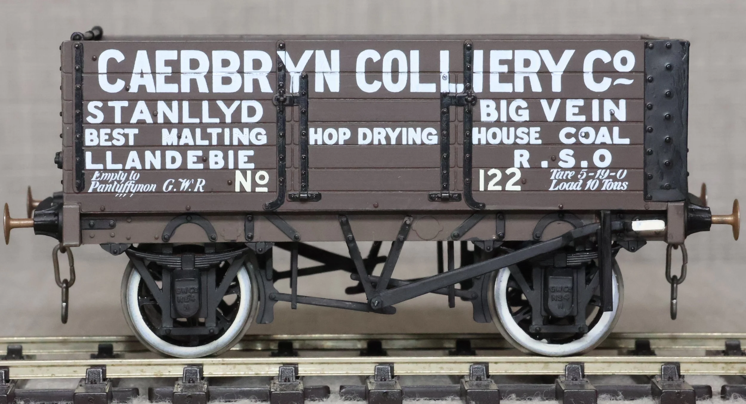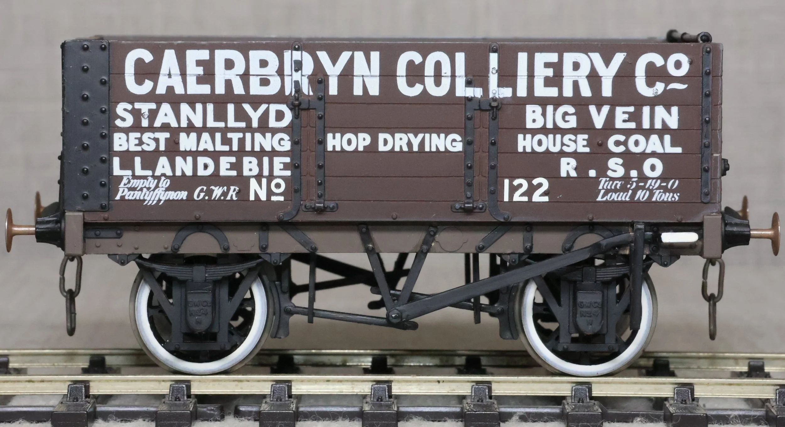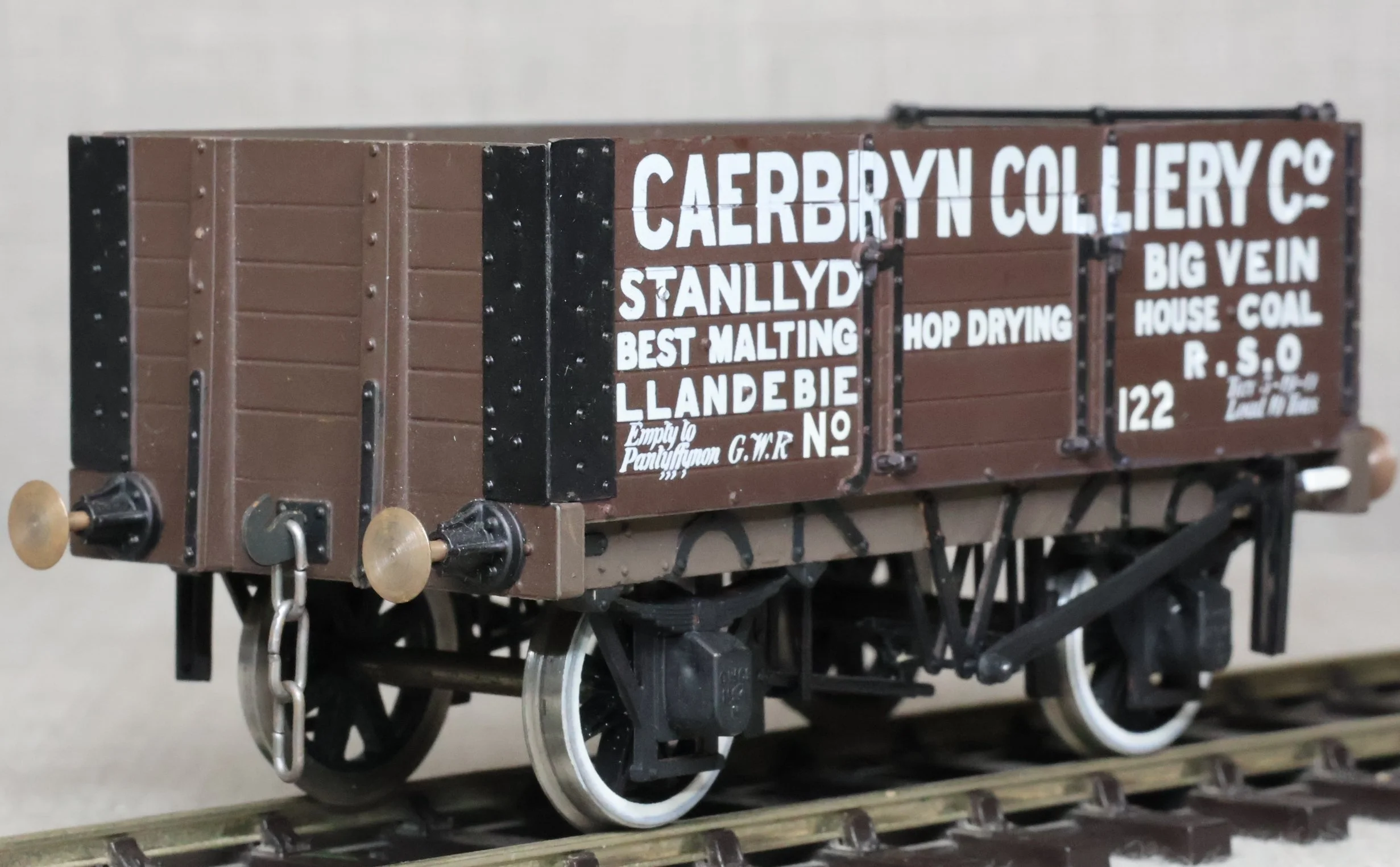WRP103. Private Owner 10 Ton 6 Plank Open Wagon 'Caerbryn Colliery' No. 122. This is from a plastic kit and is lightly used. £25.