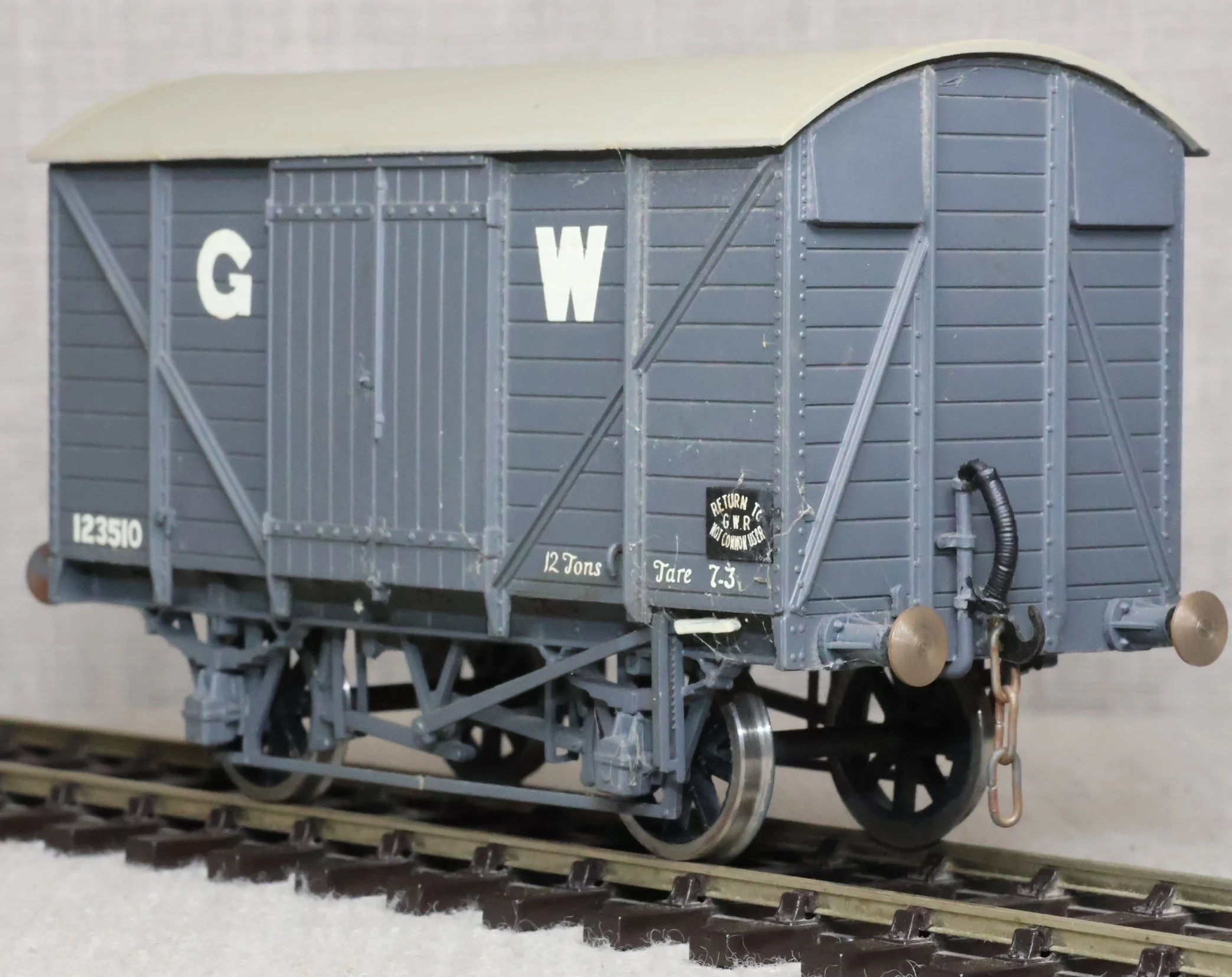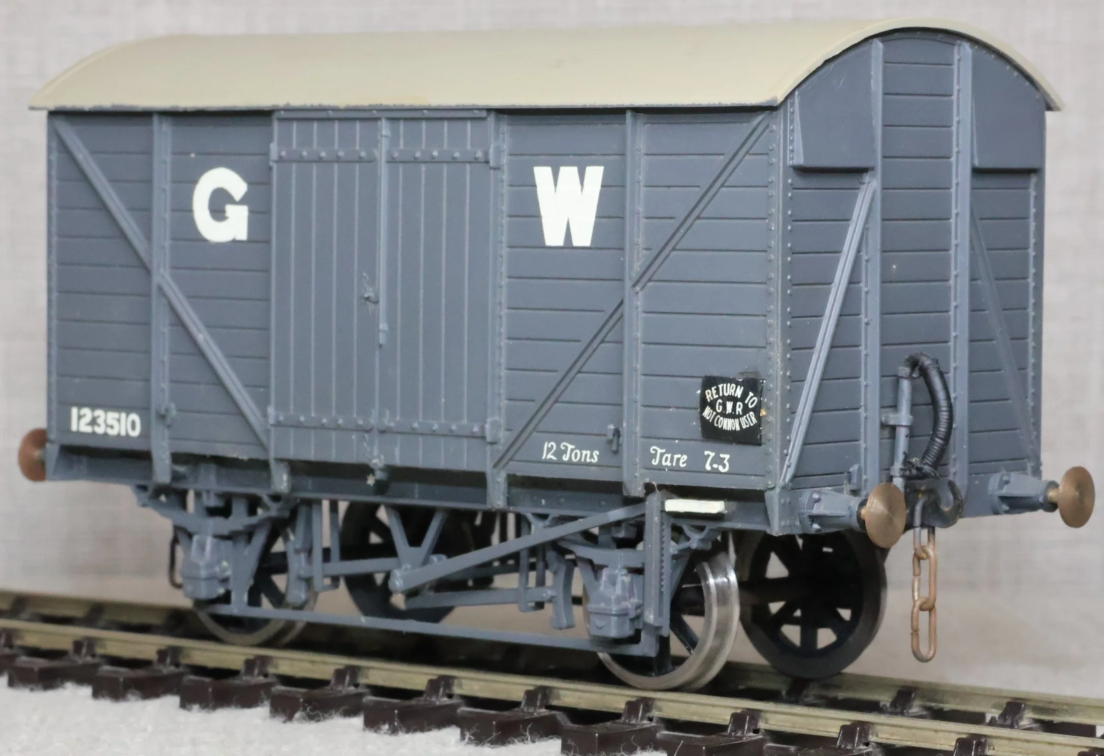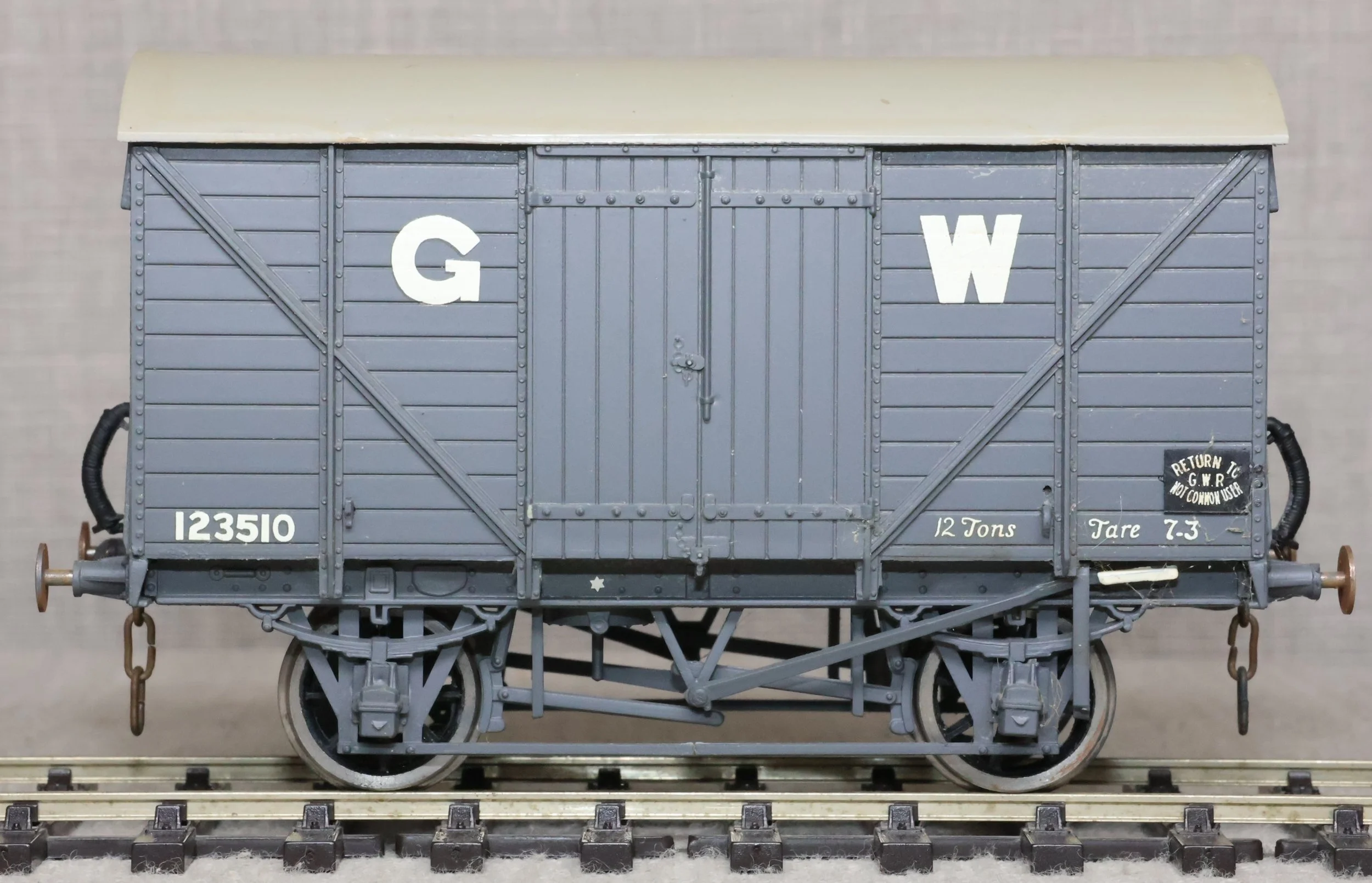 WRP46. GWR 12 Ton Covered Van No. 123510. To GWR Diagram V23/V24/V26, vacuum fitted. This is from a Parkside Dundas plastic kit, is lightly used, and is supplied in its original box. £30.